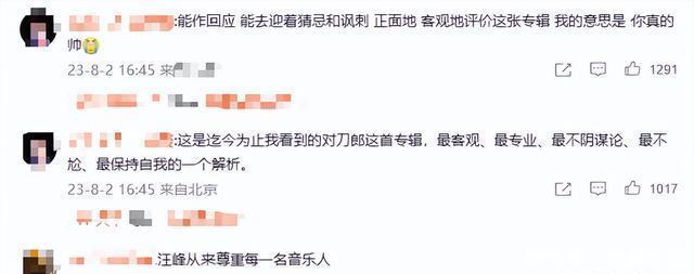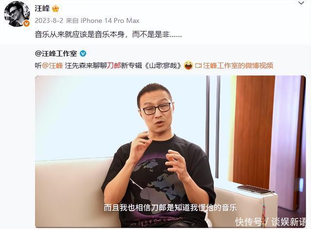 反而是汪峰自己在微博上发布了一段20多分钟的视频来点评了刀郎的新作,并回应了20年前争议的事件。 他强调“当初没有想针对谁,他对刀郎是十分尊重的”。